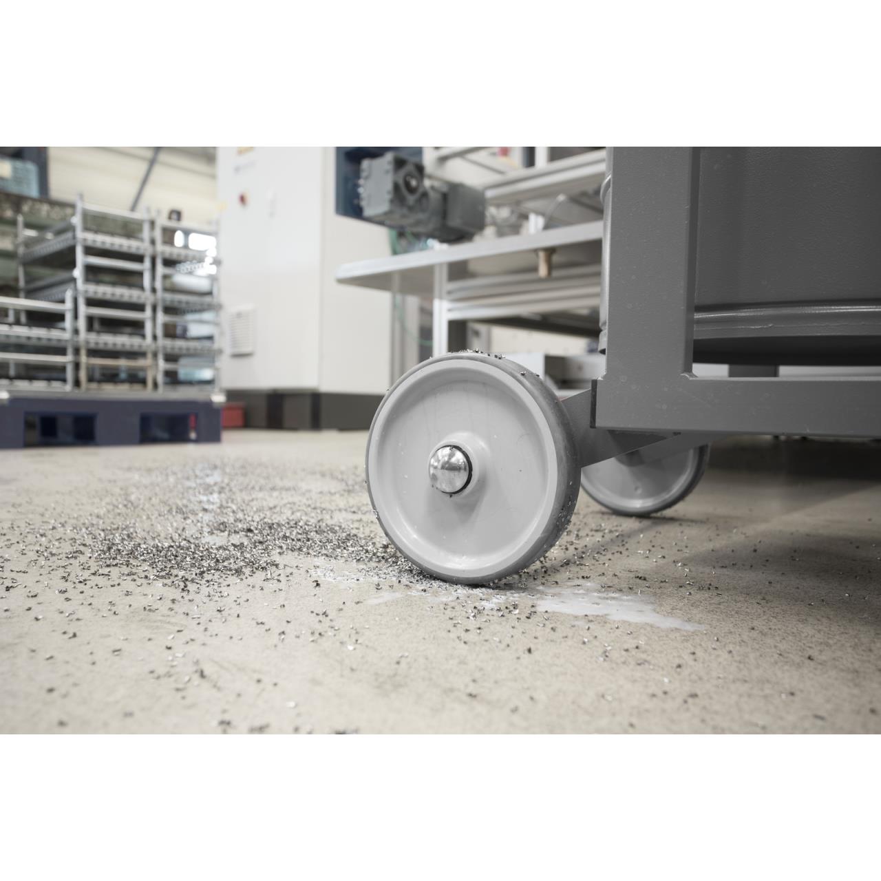 Mit 1,2 kW Motorleistung ist der IVR-L 40/12-1 ein Einstiegsgerät in die Welt des Flüssigkeits- und/oder Spänesaugens. Der IVR-L 40/12-1 ist der kleinste Flüssigkeitssauger aus der IVR-L-Familie. Der Qualitätssauger eignet sich ideal zum Aufsaugen und Trennen von kleinen Mengen Flüssigkeit und Feststoffen. Zum Beispiel Kühlmittel, Schmieremulsion, Wasser oder Öl mit Metallspänen. Die Späne können in einem Spänekorb gesammelt werden. Die aufgesaugte Flüssigkeit wird über den Entleerungsschlauch in den Kreislauf zurückgeführt. Auf Wunsch erfolgt die Entleerung per Kippfahrgestell. Am Entleerschlauch lässt sich der aktuelle Füllstand jederzeit bequem feststellen. Der 360° drehbare Schlauchanschluss am Saugkopf ermöglicht ein bequemes Saugen in alle Richtungen, ohne dass der Saugschlauch sich verknotet. Die integrierte mechanische Füllstandsabschaltung schützt den Sauger vor Überfüllen.