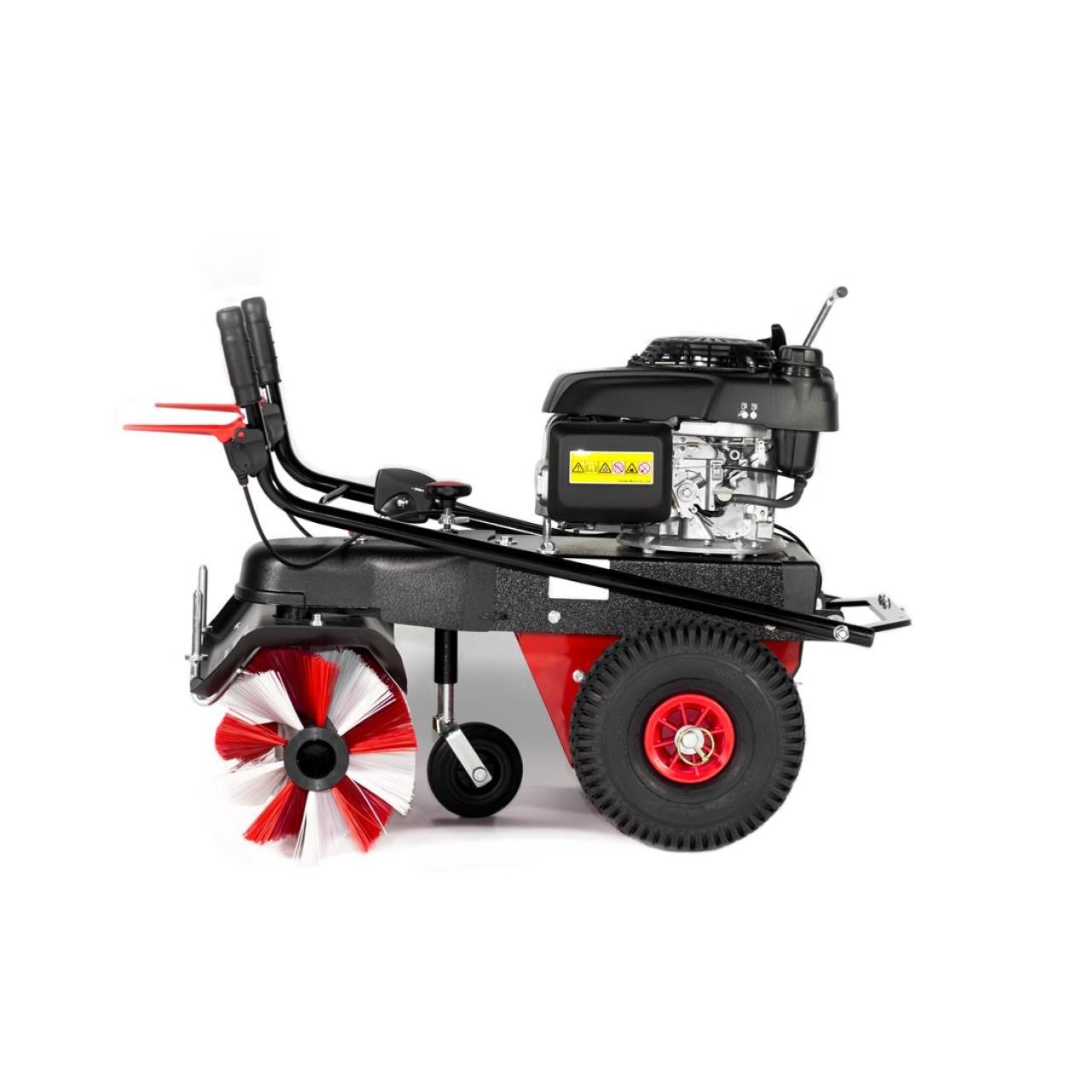 Der Lenker ist für den Transport oder die Verstauung komplett umklappbar und lässt sich in 3 Stufen in der Höhe verstellen. Mit dem umfangreichen Zubehörprogramm, bestehend aus Schneeräumschild, Schneeketten und Kehrgutbehälter, wird aus der Kehrmaschine ein Gerät, das sich das ganze Jahr hindurch einsetzen lässt.
