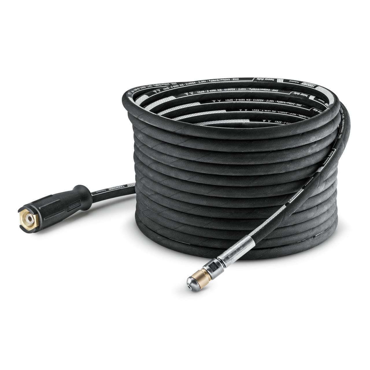 Zur gründlichen Rohrreinigung: flexibler, 30 m langer Hochdruckschlauch mit Gewindeanschluss für Düse G1/4''.